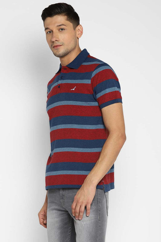 Men's Polo Collar Yarn Dyed Striped T-Shirt - Navy, Burgundy & White