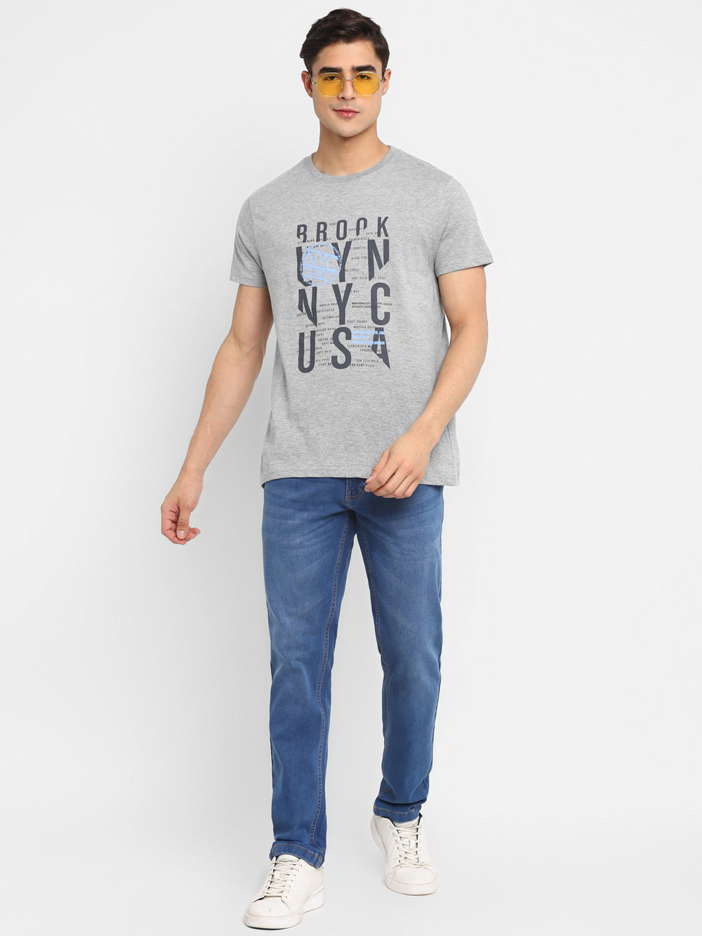 Printed Round Neck T-Shirt for Men - Grey Melange